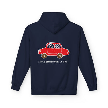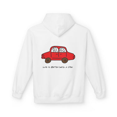 Life is Better with a Dog -- Car (Back Print) | Softstyle Fleece Hoodie | Color Collection | Life Is Better with A Dog Collection