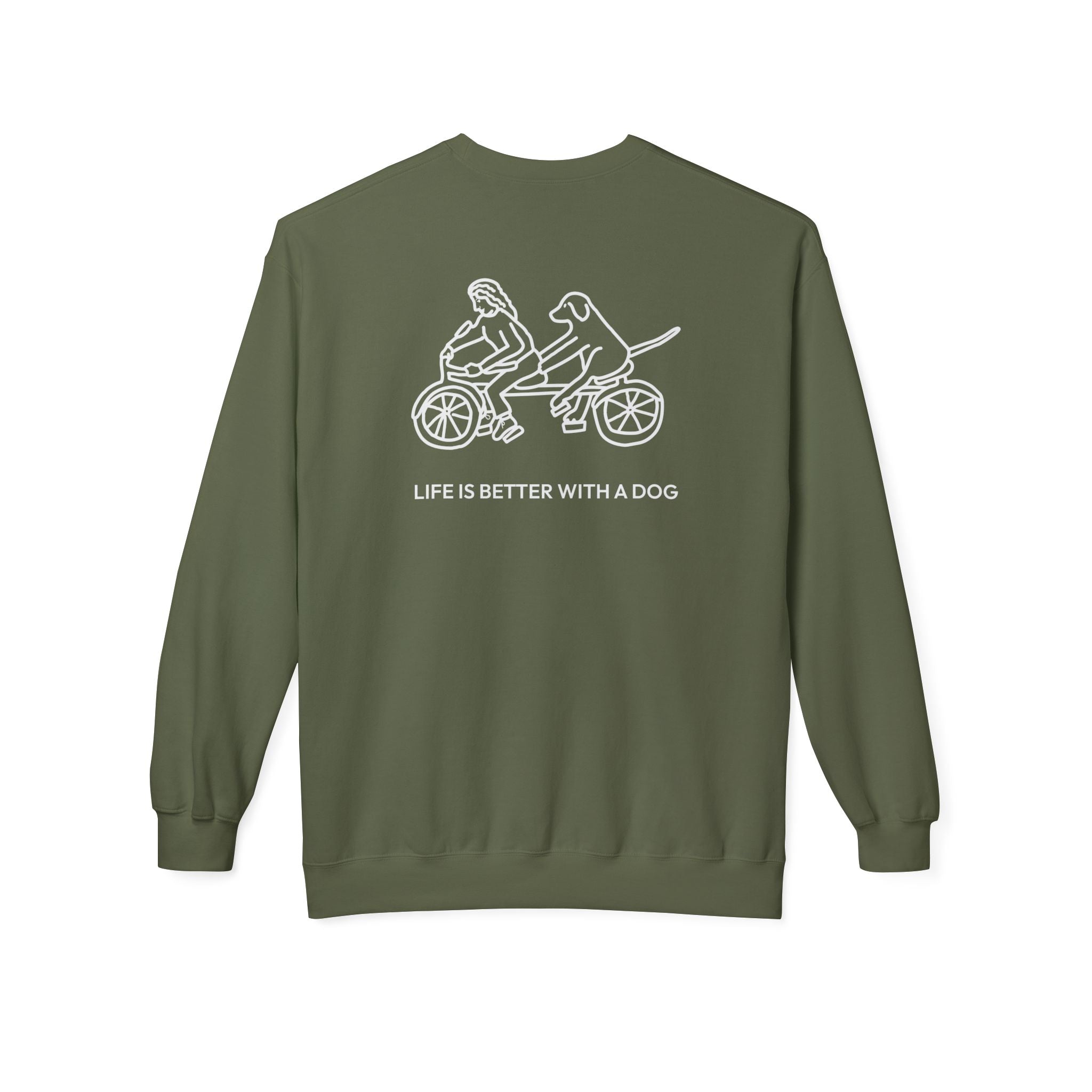 Life Is Better With A Dog -- Bicycle (Back Print) | Softstyle Fleece Sweatshirt | Life Is Better With A Dog Collection