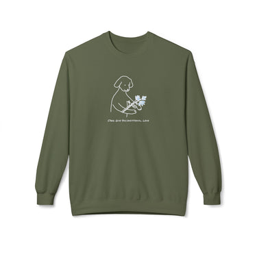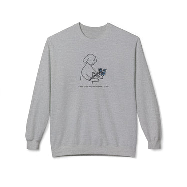 Stay cozy in style with the Morewoof "Dogs Give Unconditional Love" softstyle fleece sweatshirt. Featuring a charming doodle of a dog presenting an armful of flowers, this message will resonate with every dog lover. Made from an 80% - 20% cotton and polyester blend, it features a brushed interior and 100% ring spun cotton face for exceptional comfort and durability while the dropped shoulder design always ensures a relaxed fit. Celebrate the unconditional love of dogs every time you wear it—you’ll want to make it a staple in your collection!