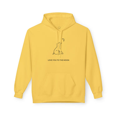 The Design Story: Make room for your new favorite hoodie with the “Love You To The Moon” design, featuring a soulful drawing of a dog gazing up at the moon — quiet, simple, and full of meaning. The phrase isn’t just something we say. It’s how dogs love — deeply, loyally, and without condition. The design is a tribute to the love our dogs give us every day, and the love we’re reminded to give in return, and to our own loved ones.