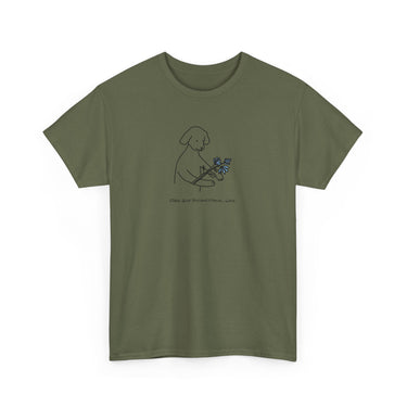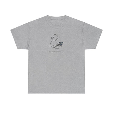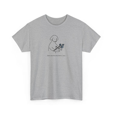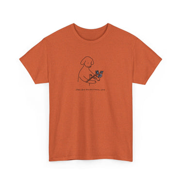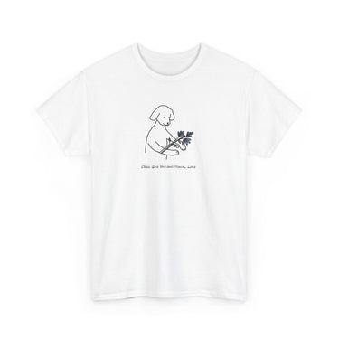 Show your love for dogs with the Dogs Give Unconditional Love soft cotton tee from the Spring Collection. With its design of a dog holding out flowers as a symbol of dogs' gift of unconditional love, this medium fabric shirt is comfortable, durable, and sustainable. We've even ditched the label label to ensure additional comfort, while the ethical production process ensures a high-quality, safe product. Show your love for dogs in style with this soft cotton tee -- you'll want to wear it again and again.
