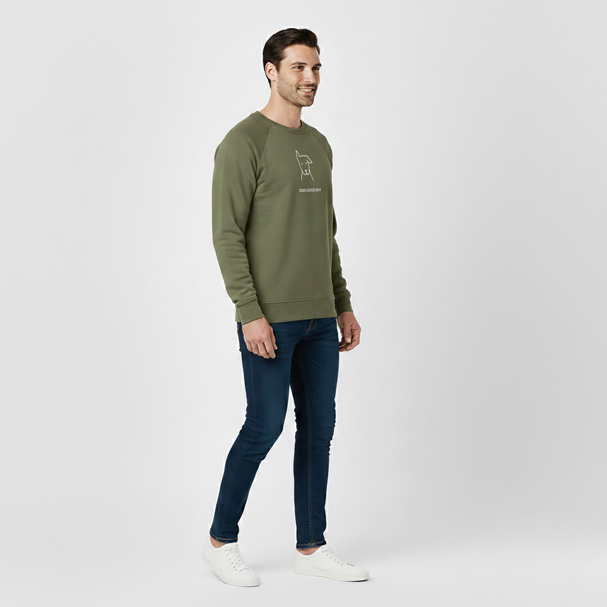 The Design Story: Make room for your new favorite sweatshirt with the "100% Good Boy" Softstyle Fleece Sweatshirt, part of the Morewoof Rescue Collection. Simple and sweet, the “100% Good Boy” design captures the joy of a happy rescue dog in its purest form, reminding us that a dog’s breed is not as important as the playful spirit and loyal heart of a "100% Good Boy."