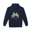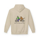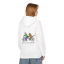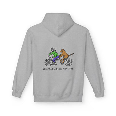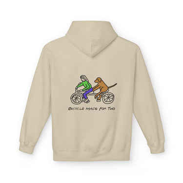 Introducing a cozy and stylish unisex midweight fleece hoodie designed for ultimate comfort and a relaxed fit. This hoodie features a playful design that captures the joy of companionship, perfect for dog lovers and cyclists alike. The vibe is casual yet expressive, making it an ideal addition to your everyday wardrobe. Whether you're lounging at home, heading out for a brisk walk, or enjoying a weekend getaway, this hoodie adds warmth and personality to your outfit. It's a great gift for friends and family, especially those who appreciate unique illustrations. Perfect for casual outings, dog-walking adventures, and gift-giving occasions like birthdays, holidays, and pet-themed celebrations.