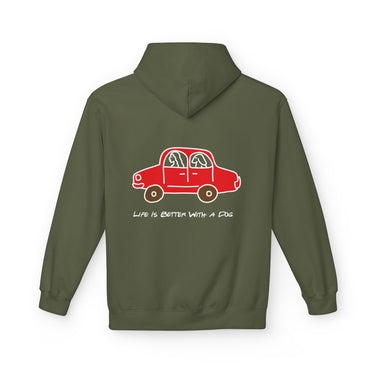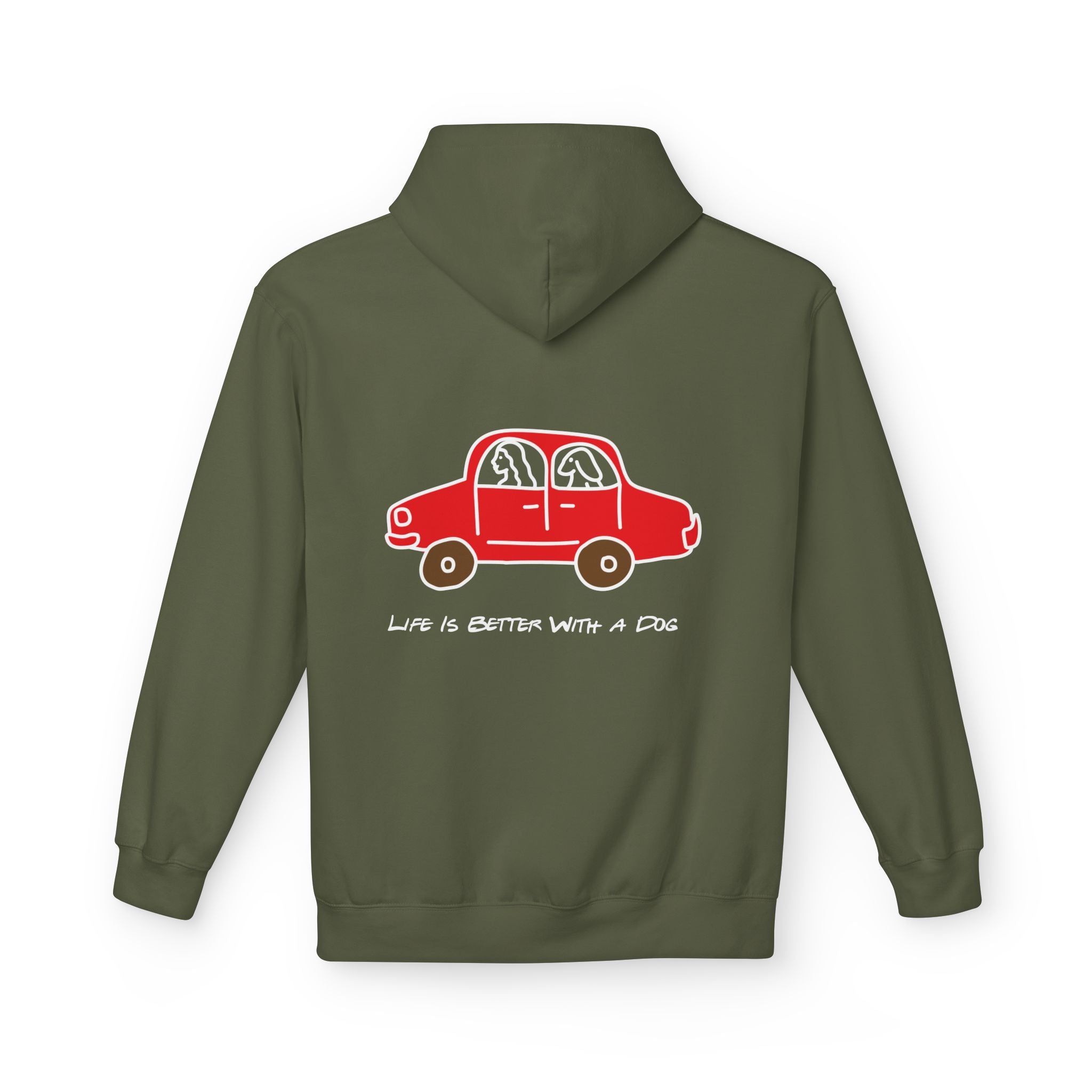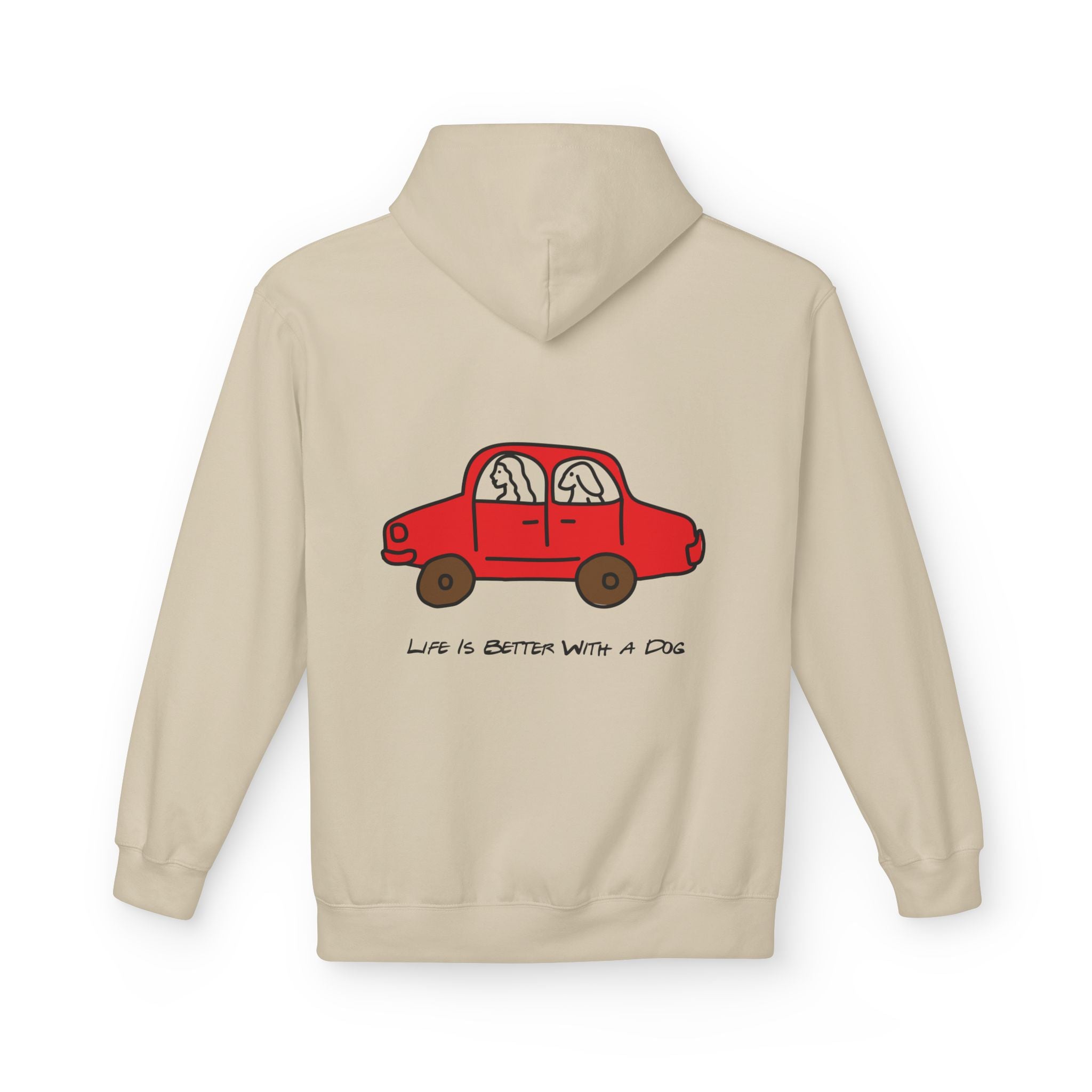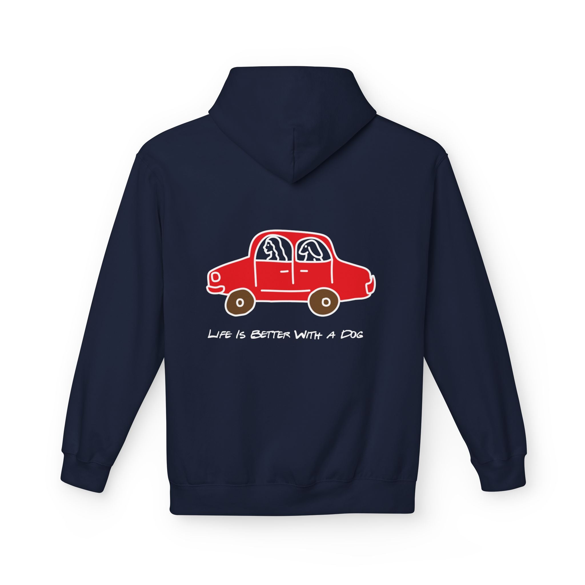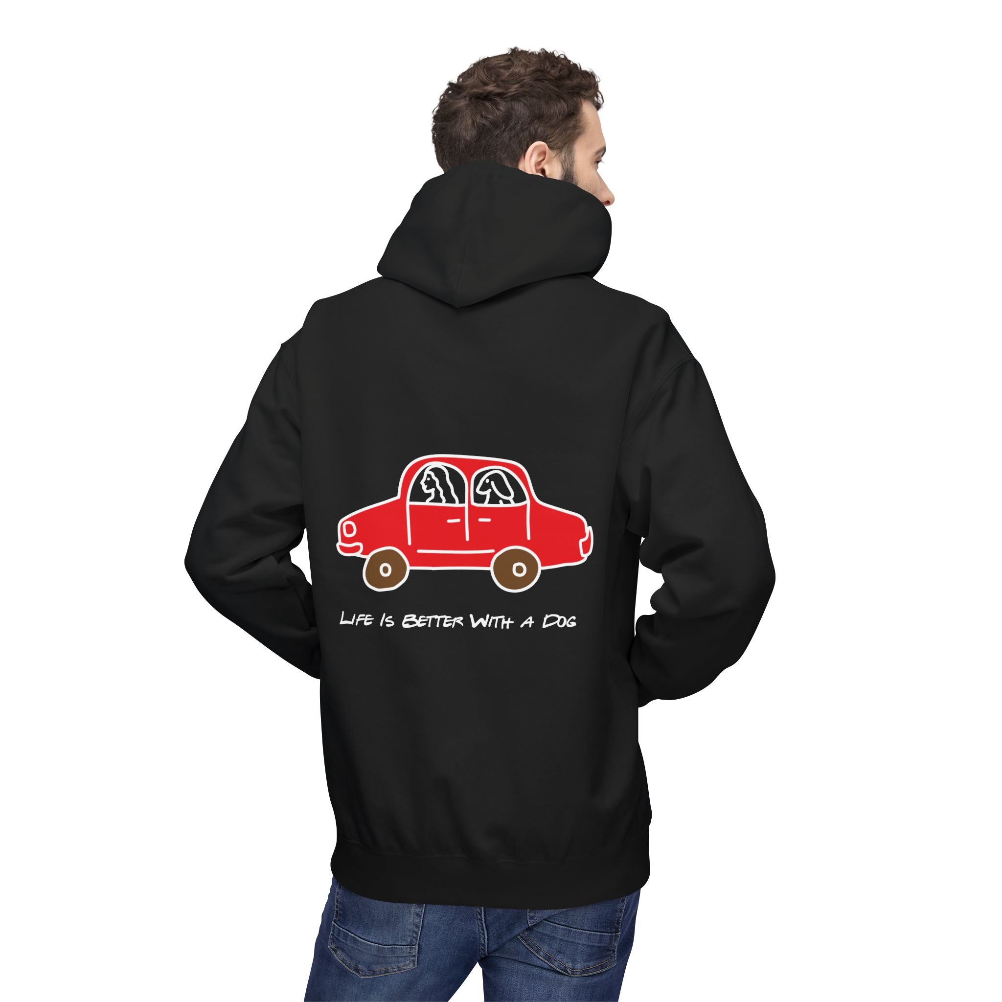 Life is Better with a Dog -- Car (Back Print) | Softstyle Fleece Hoodie | Color Collection | Life Is Better with A Dog Collection