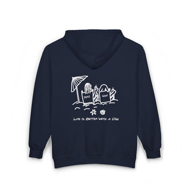 Life is Better with a Dog -- Beach (Back Print) | Full Zip Hoodie | Summer Collection | Life Is Better With A Dog Collection