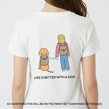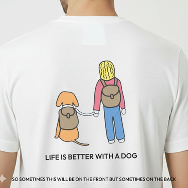 Life Is Better With A Dog - Hiking Image (Back Print) | Soft Cotton Tee | Color Collection |