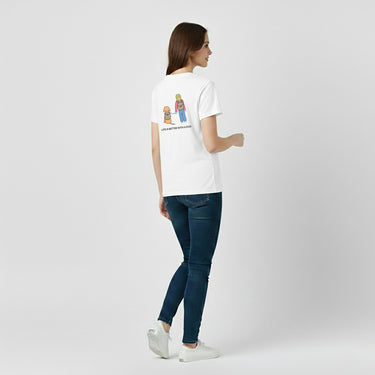 The Design Story: Make room for your new favorite tee -- the MoreWoof soft cotton tee for serious dog lovers. In this stunning color version, the heartfelt “You’ll Never Walk Alone” design depicts the back view of a woman with her faithful dog walking together, step for step. The design captures the love and loyalty that we get from our dogs as we navigate the ups and downs of life.