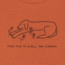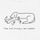 Spring is such a beautiful time of renewal rebirth and you can embrace the season with our heartfelt "Take Time To Smell the Flowers" tee, a design that encourages us to pause and appreciate the beauty around us. Part of our Spring Collection, this classic 100% cotton tee showcases a charming hand-drawn illustration of a sleeping dog among a bed of flowers. Drawn by artist Mimi Bergson, it is sure to warm the hearts of dog lovers everywhere. It's the perfect base for any outfit, whether you're keeping it casual or adding a touch of flair. Not only does it feel great on your skin, but it also stands up for ethical and sustainable fashion. And because we know comfort is key, we've ditched the scratchy labels. Whether you're out for a walk with your dog or just lounging together on the couch, our tee is as versatile as it is comfy.