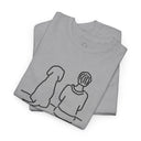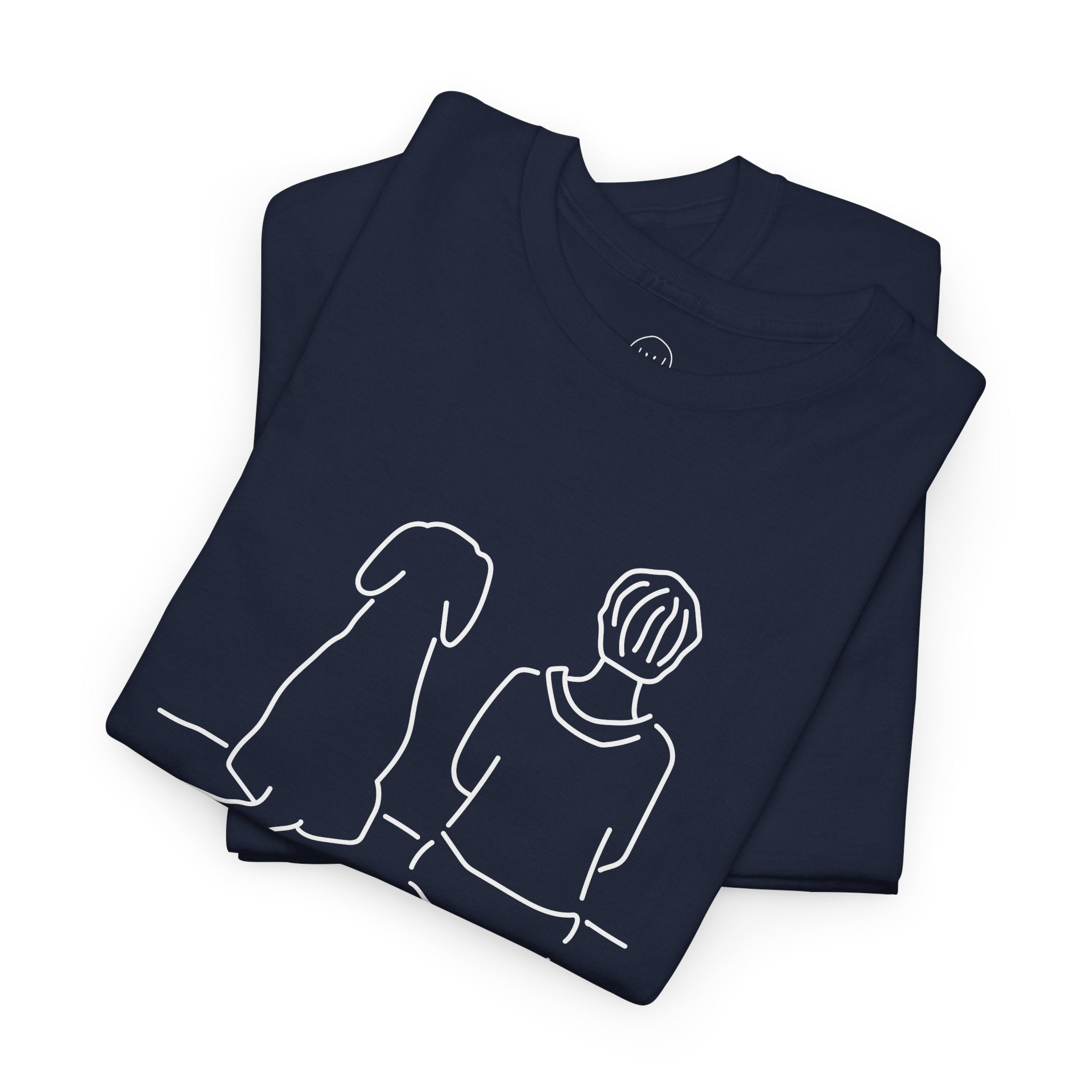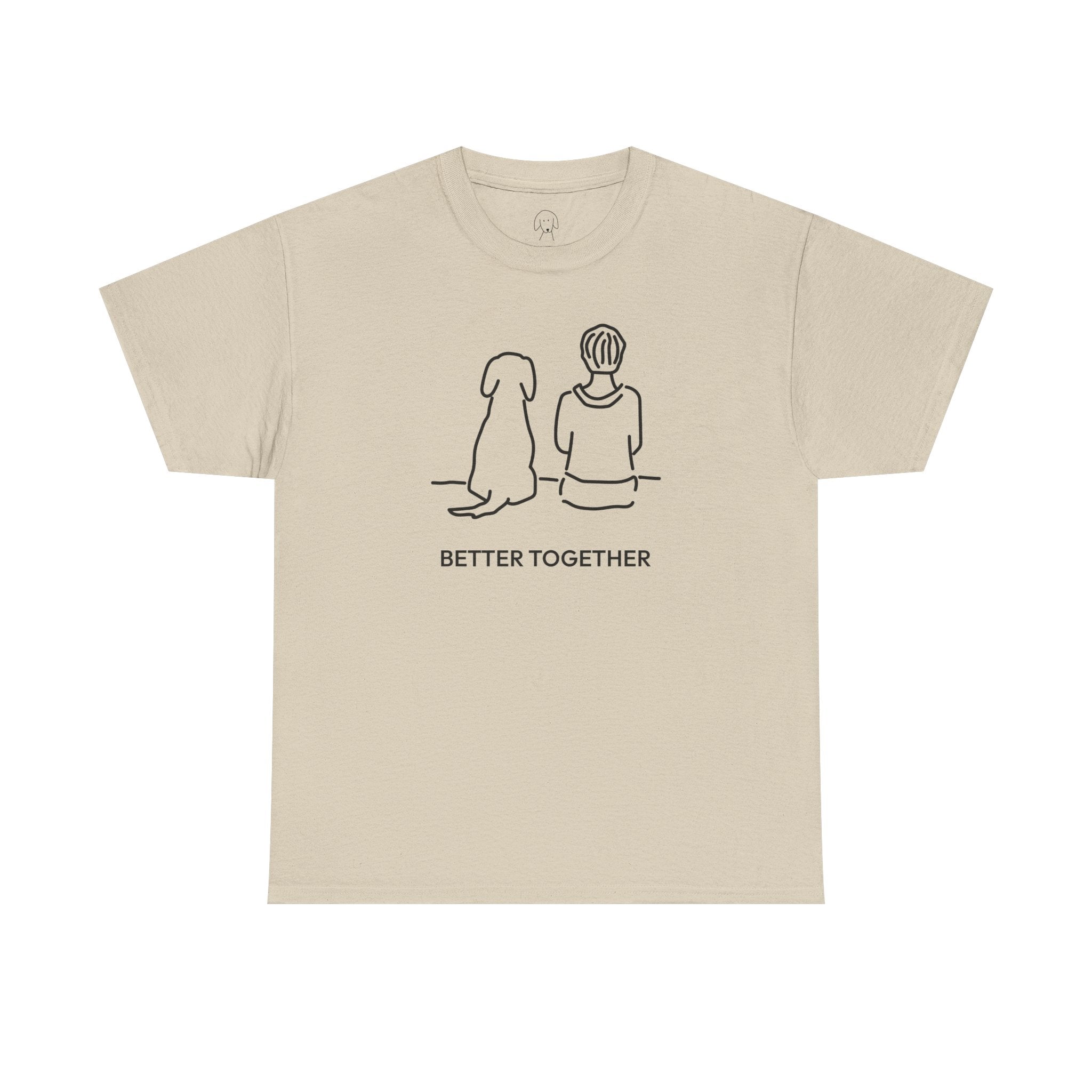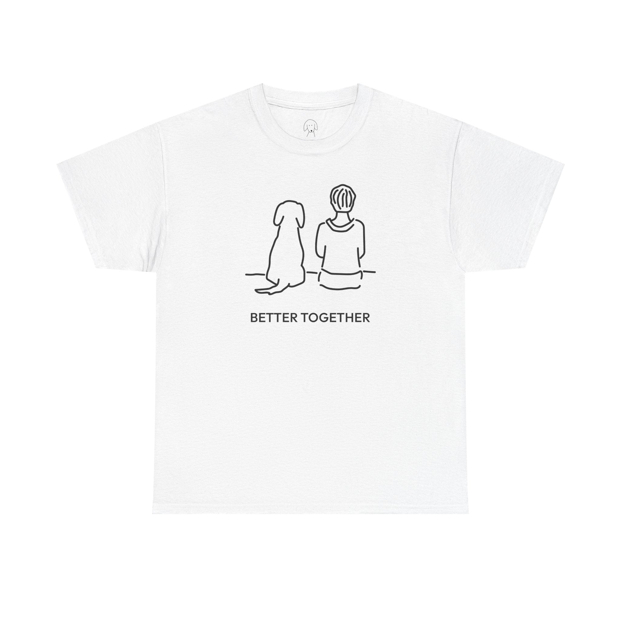 The Design Story: Make room for your new favorite tee. Morewoofs’ “Better Together” soft cotton tee features a minimalist sketch of a boy and his dog sitting side by side. The simple image captures the amazing bond between us and our dogs while the accompanying phrase, “Better Together”, reflects the love, loyalty, and partnership that enrich every moment of these unique relationships.
