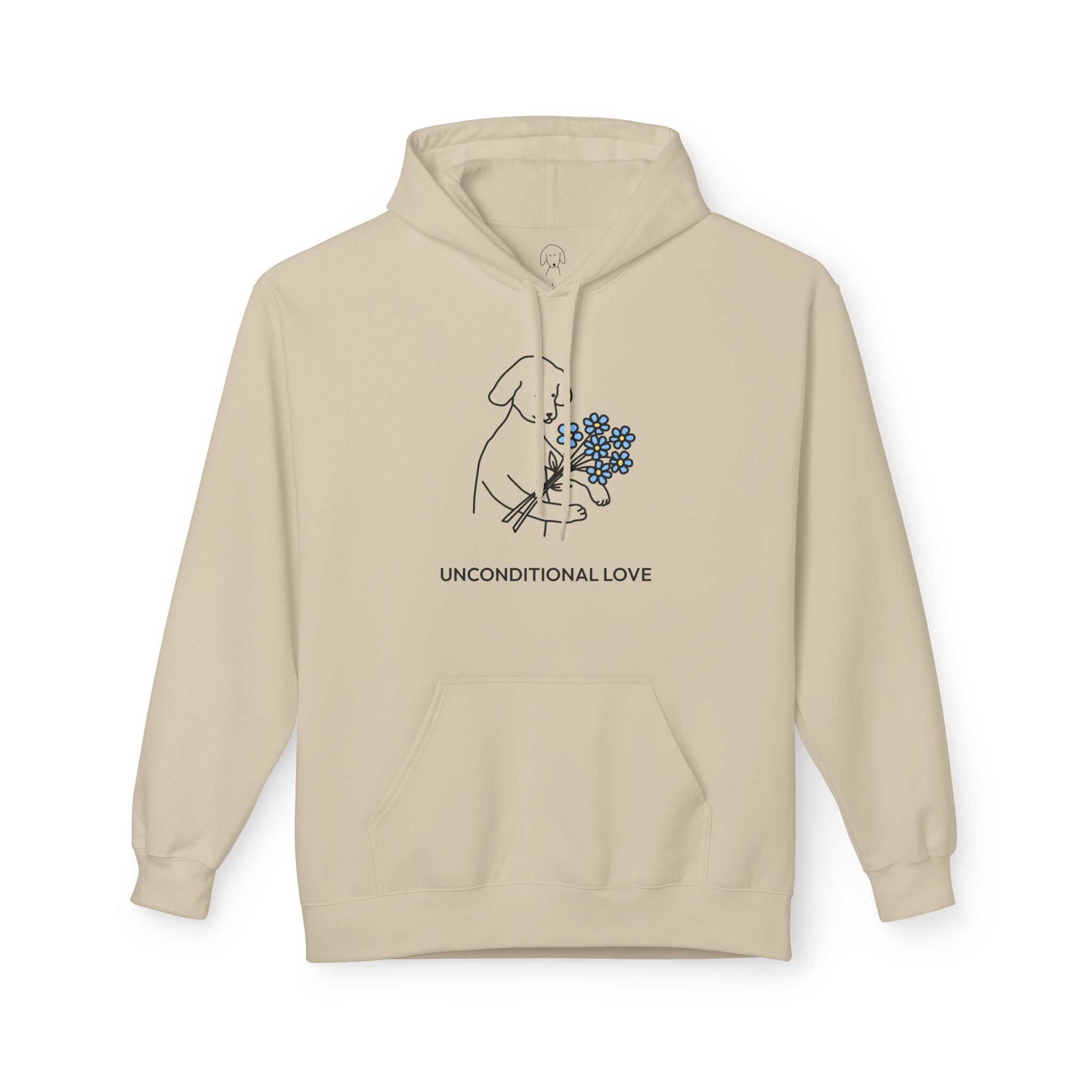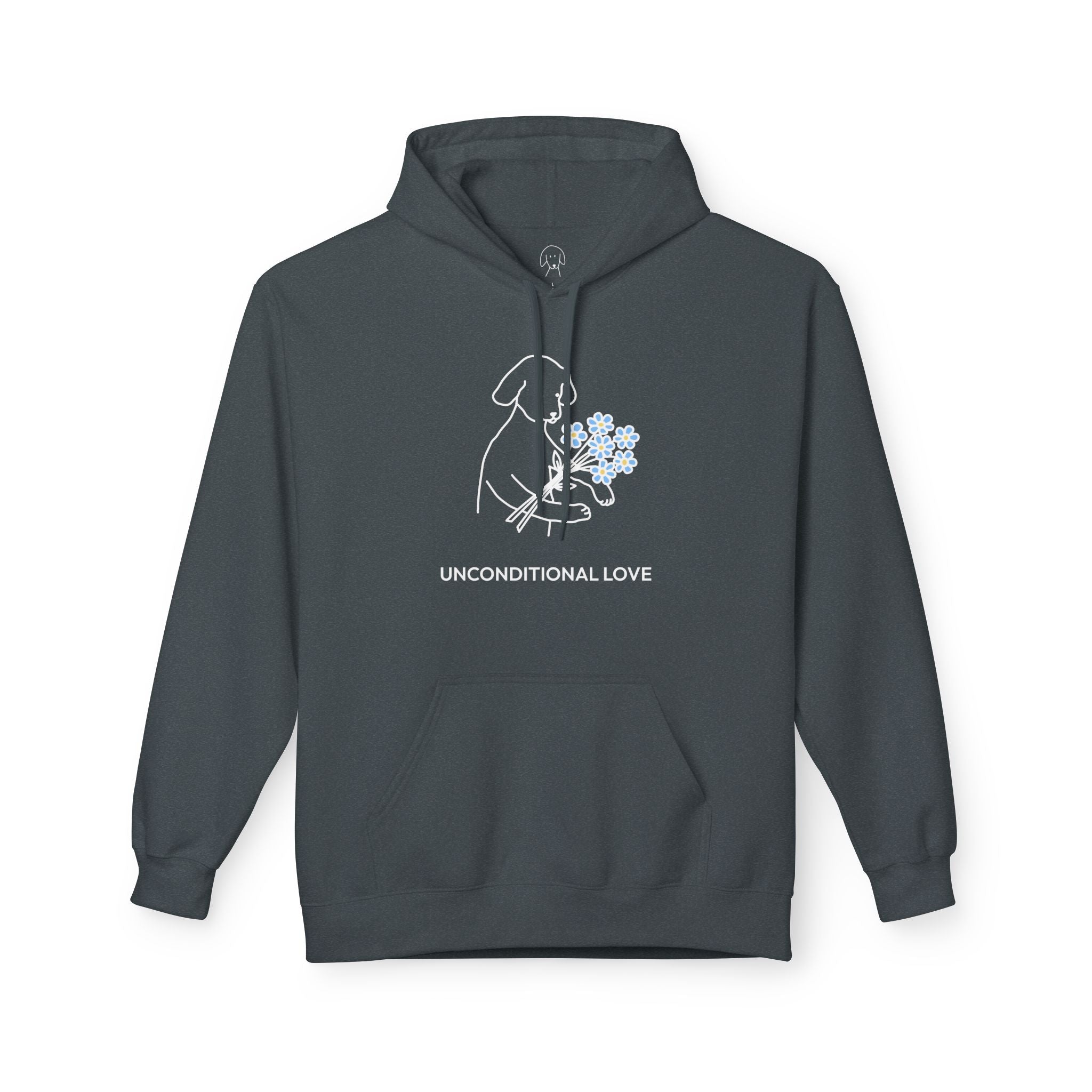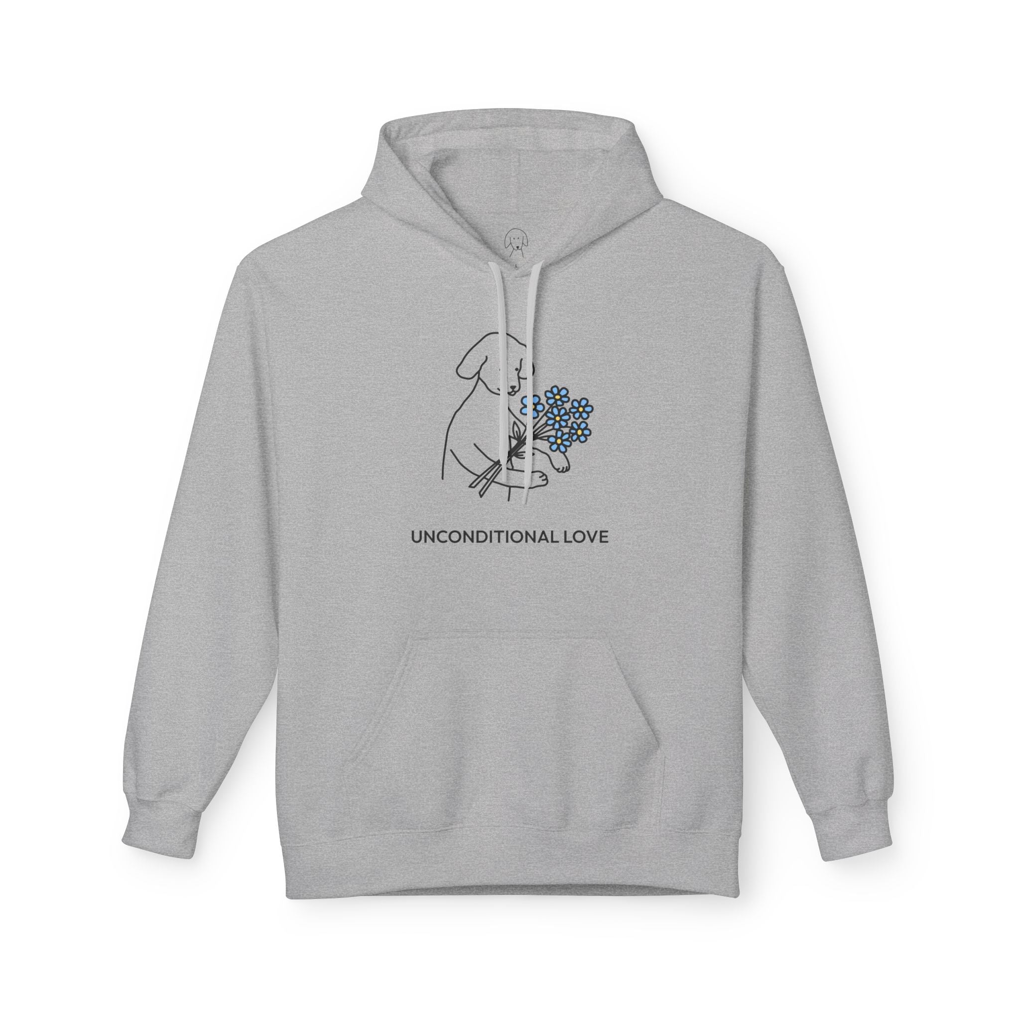 The Design Story: MoreWoof is more than a brand—it’s a community of people who believe life is better with dogs. Every design celebrates the joy, loyalty, and unconditional love that dogs bring into our lives. The’ “Unconditional Love" Softstyle Fleece Hoodie features an image of a sweet dog holding up a sprig of flowers, paired with the heartfelt phrase “Unconditional Love.”The design  is a wearable reminder of the quiet loyalty and unwavering affection that only a dog can give.