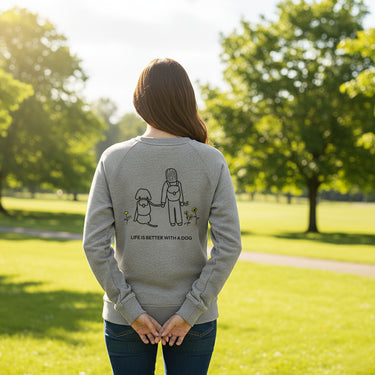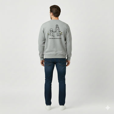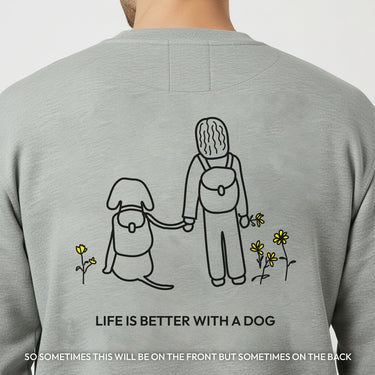 Life Is Better With A Dog -- Hiking (Back Print) — Softstyle Fleece Sweatshirt | Life Is Better With A Dog Collection