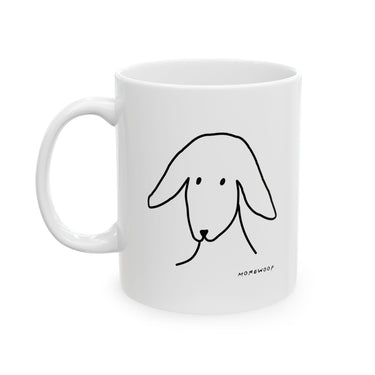 Start your day with a smile with our MoreWoof personalized ceramic mug. Each 11-ounce mug has one of our iconic dog faces on one side and a heartfelt saying about dogs on the other, transforming every sip into a moment of joy. Crafted from durable white ceramic, and microwave and dishwasher safe, these mugs are as practical as they are charming. Perfect for gifting or just brightening your own day!