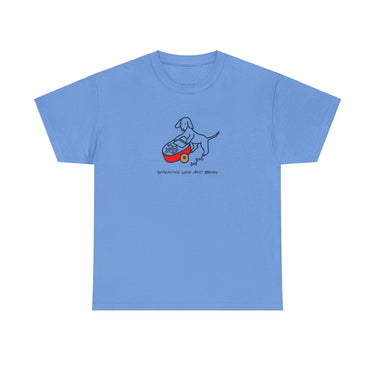 Celebrate your love for dogs with Morewoof's "Spreading Love And Bones" Tee! Part of the Morewoof Color Collection, the charming design showcases the Morewoof dog pushing a wheelbarrow filled with bones, beautifully symbolizing the generous spirit and unconditional love that dogs bring into our lives, complemented by the heartwarming phrase "Spreading Love And Bones." The super soft 100% cotton tee is the perfect base for any outfit. Not only does it feel great on your skin, but it also stands up for ethical and sustainable fashion. We're all about the little details that make a big difference - like a smooth finish for a clear, crisp look for this beautiful design and no annoying side seams. And because we know comfort is key, we've ditched the scratchy labels. Whether you're out for a walk or just lounging with your furry friend, our tee is as versatile as it is comfy.