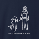 Take your love for dogs to the next level with our "You'll Never Walk Alone" back print sweatshirt! This softstyle fleece sweatshirt features a unique design of a woman walking her dog, representing the incredible bond between dog and owner. Because the design shows the back view of the woman walking her dog, we decided it would work best on the back of the sweatshirt. We hope you approve. It's the perfect choice for any dog lover looking to make a statement in style. Expertly crafted from an 80/20 cotton/polyester blend, it's a perfect choice for a long walk with your dog or just snuggling for on the couch. And the delightful dog doodle and accompanying saying truly lets you wear your heart on your sleeve, or here, on your back. Grab yours now and show off your passion for dogs. They'll never let you walk alone!